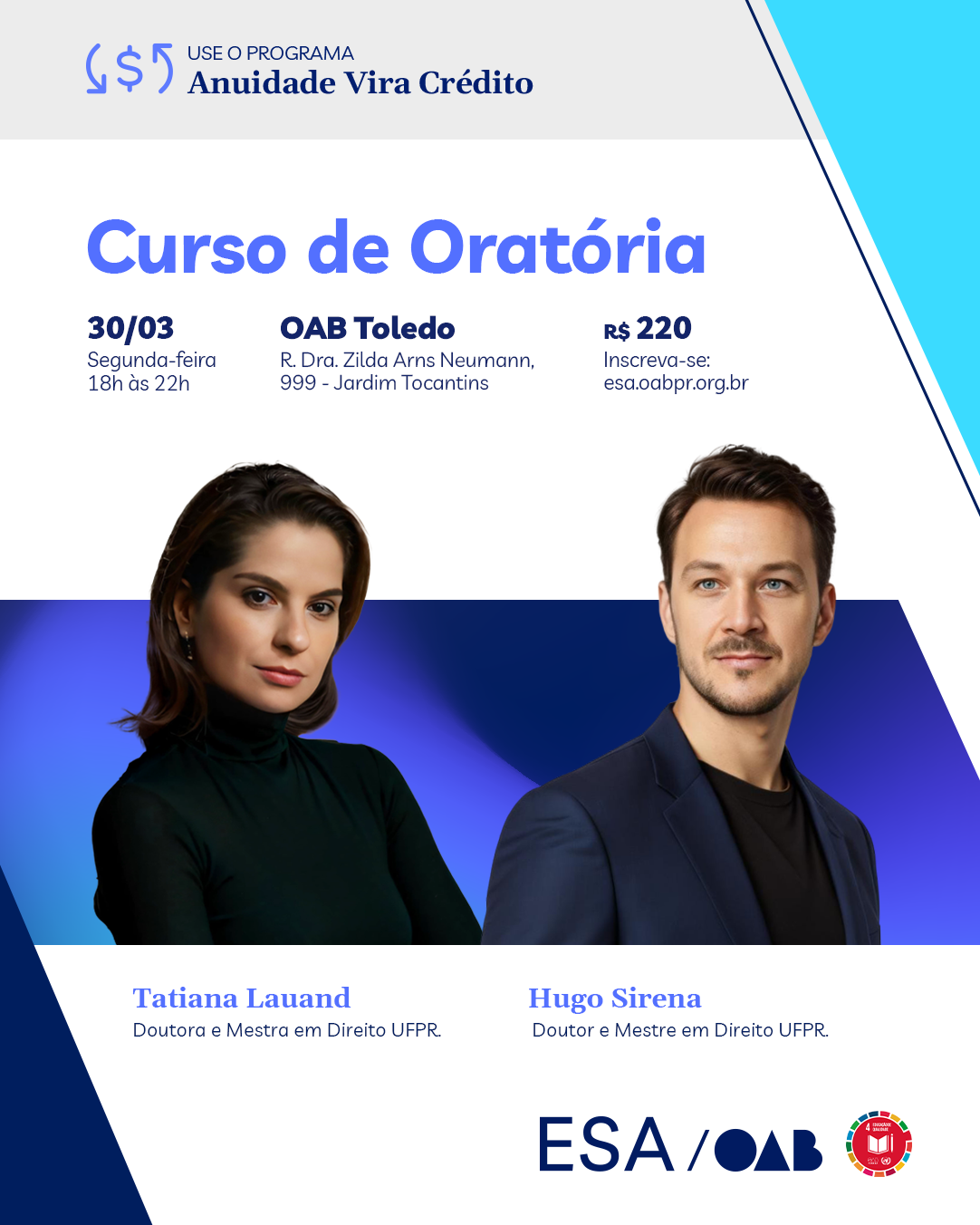 Objetivo e Breve Descrição do Curso: desenvolver técnicas de expressão verbal e corporal voltadas à prática de oratória pelos profissionais da advocacia e outras profissões que exigem comunicação e convencimento.