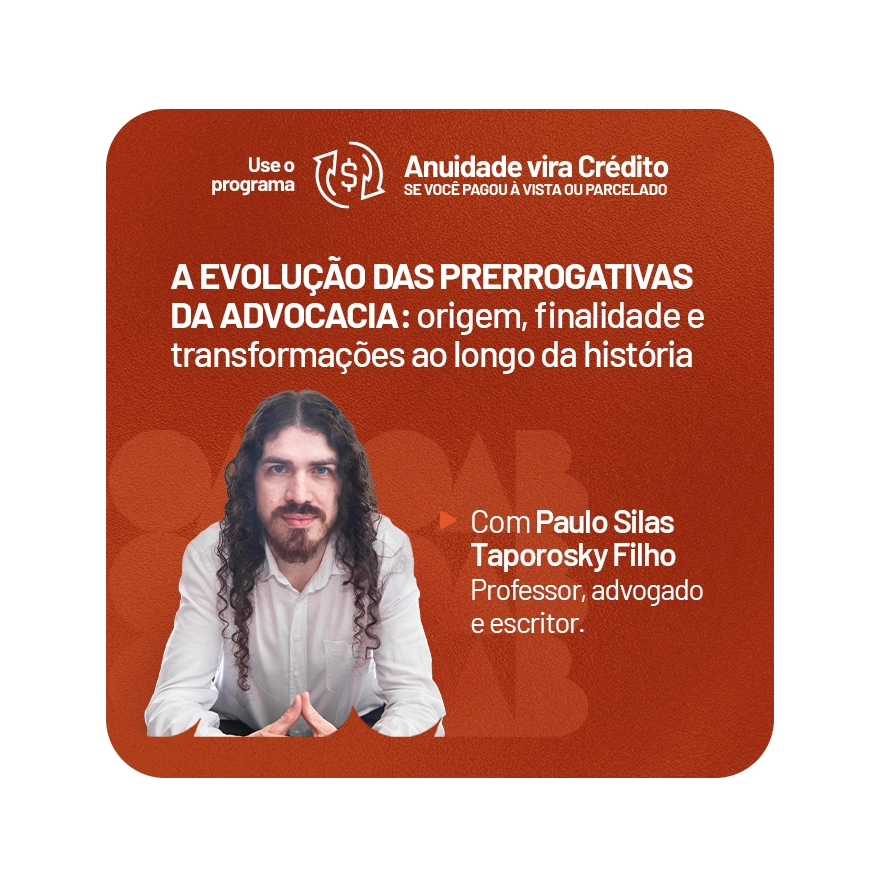 Objetivos do curso: As prerrogativas profissionais da advocacia são pilares fundamentais para a garantia de uma defesa independente e justa. Entretanto, muitos advogados desconhecem sua origem, as razões de sua criação e as transformações pelas quais passaram ao longo da história. Este curso tem como objetivo apresentar uma visão histórica e normativa das prerrogativas profissionais da advocacia, desde seus primeiros registros até as normas vigentes no Brasil. Serão abordados: O surgimento das prerrogativas no contexto do desenvolvimento do Direito e da advocacia; As razões históricas que levaram à sua criação e suas finalidades iniciais; As primeiras normativas que reconheceram essas garantias; A evolução das prerrogativas no Brasil, com destaque para as principais leis que as regulamentaram e modificaram; A relação entre as prerrogativas da advocacia e os direitos fundamentais. Ao final do curso, os participantes terão uma compreensão mais ampla sobre a importância das prerrogativas, sua natureza jurídica e os desafios enfrentados ao longo do tempo para sua preservação e ampliação.