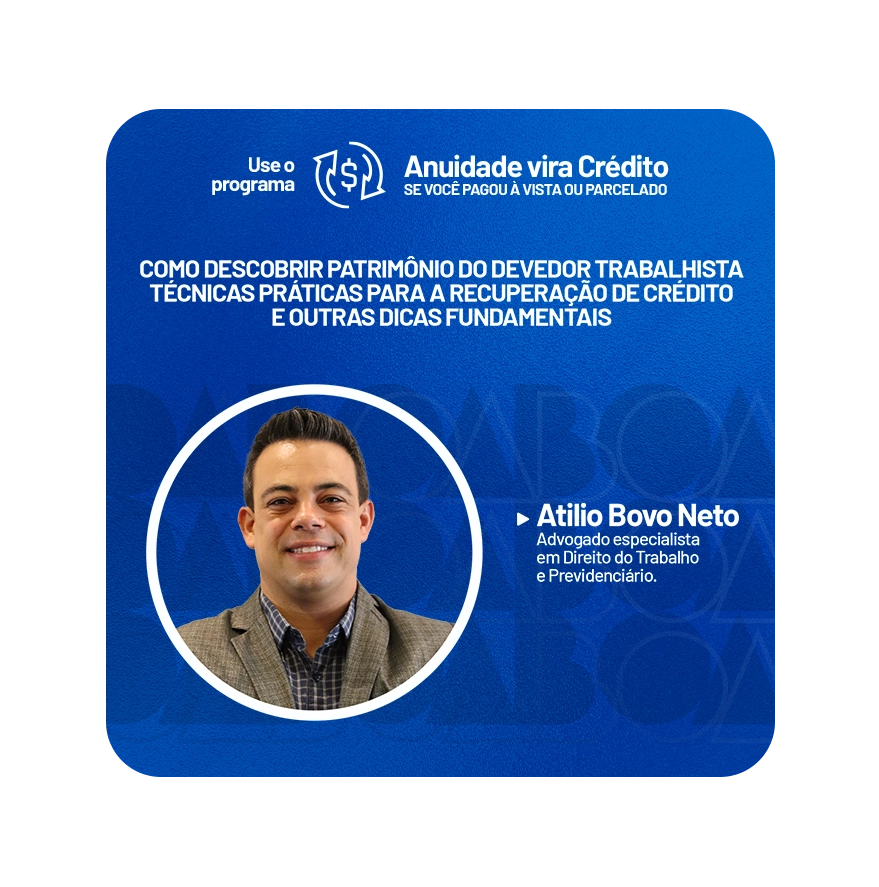 Texto explicativo/objetivo do curso: Este curso visa compartilhar técnicas já usadas em casos práticos, dicas e conhecimentos de como encontrar o patrimônio do devedor trabalhista, de forma clara e objetiva.